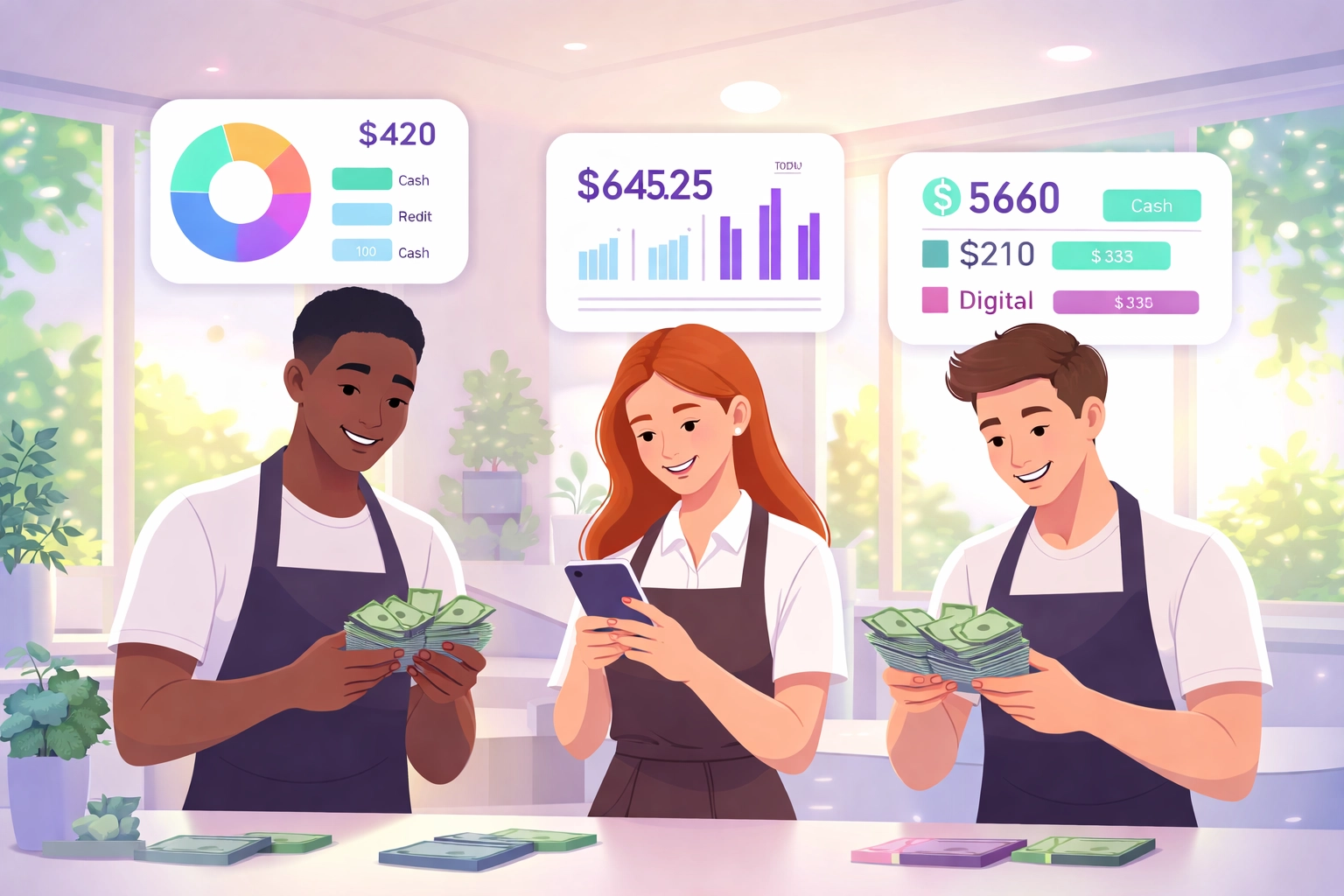 Manual tip sheets, calculator battles, and end-of-shift grumbling. Disputes slow everyone down.