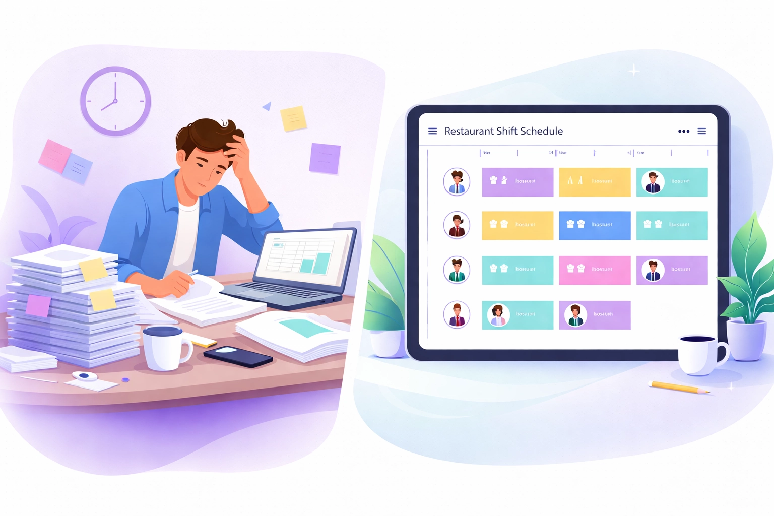 Shifts are swapped in text chains. Surprise overtime burns budget. Staff stay frustrated and disengaged.