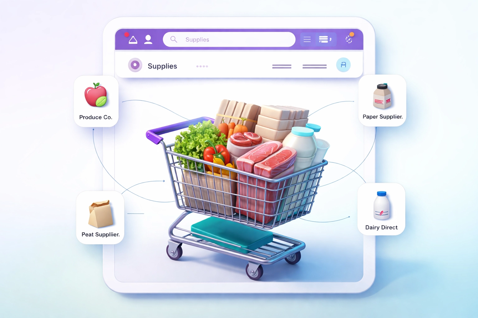 Instead of logging into Sysco's portal, then US Foods, then your local produce guy's janky website—you do it all from one place.